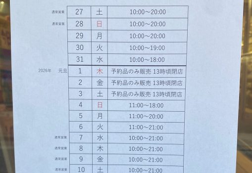 いつもご利用いただき誠にありがとうございます 誠に勝手ながら12月18日(水)は17時にて閉店させて […]