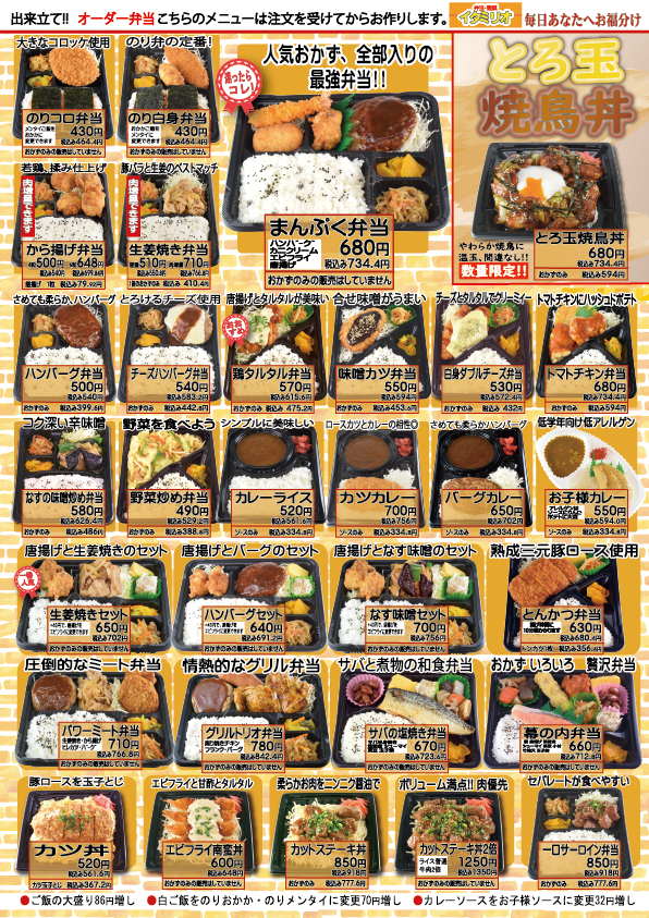 また、お弁当のご飯につきましては、内容量の変更をさせていただきます